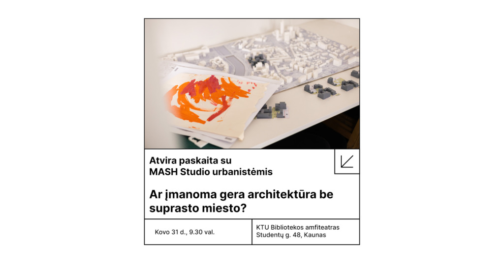 Pranešimą pristatys MASH Studio studijos vadovė, urbanistė Živilė Šimkutė ir architektė–urbanistė Rasa Chmieliauskaitė.