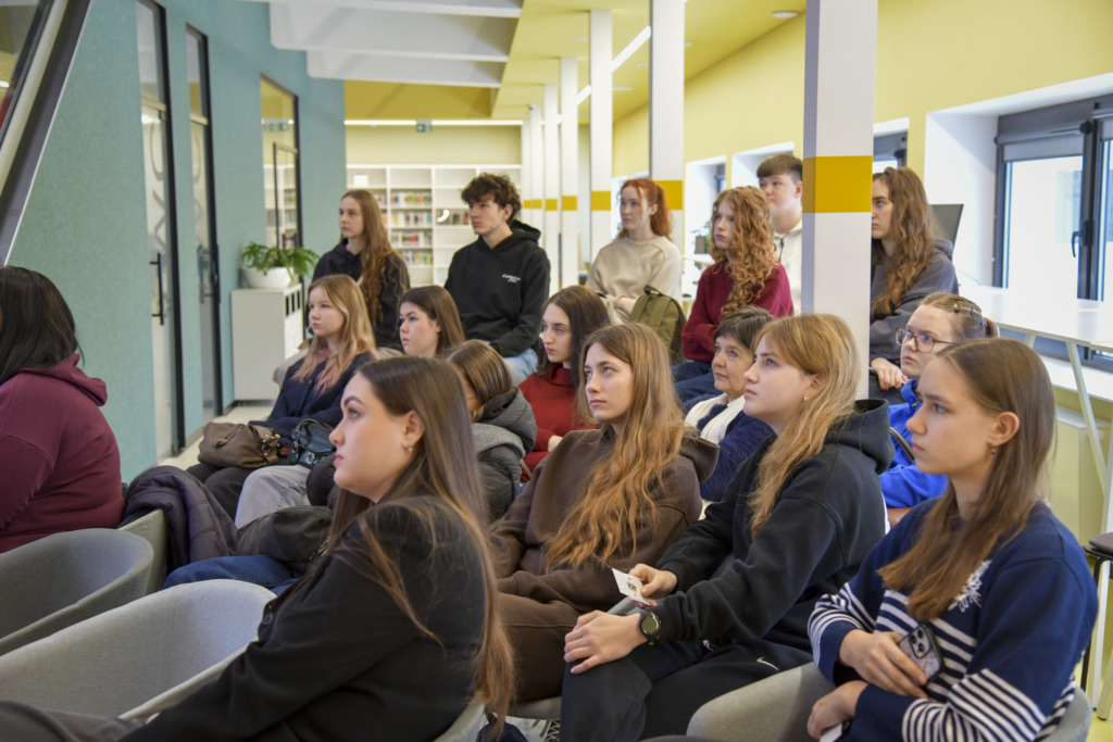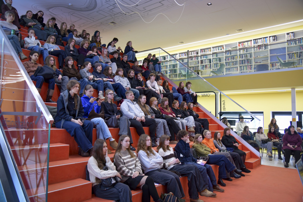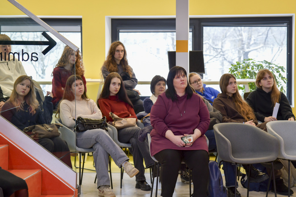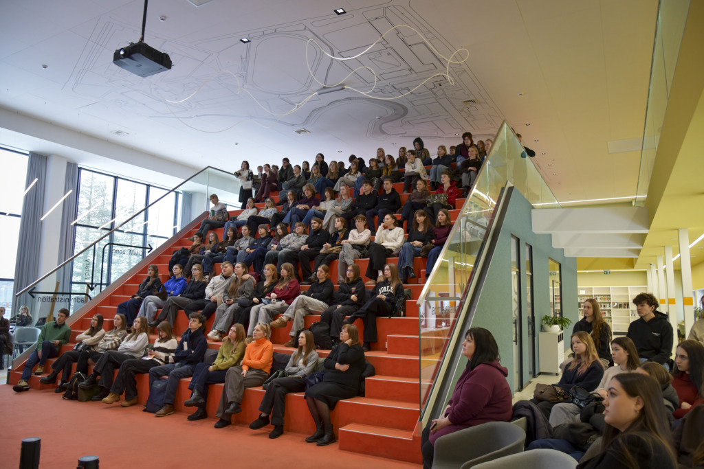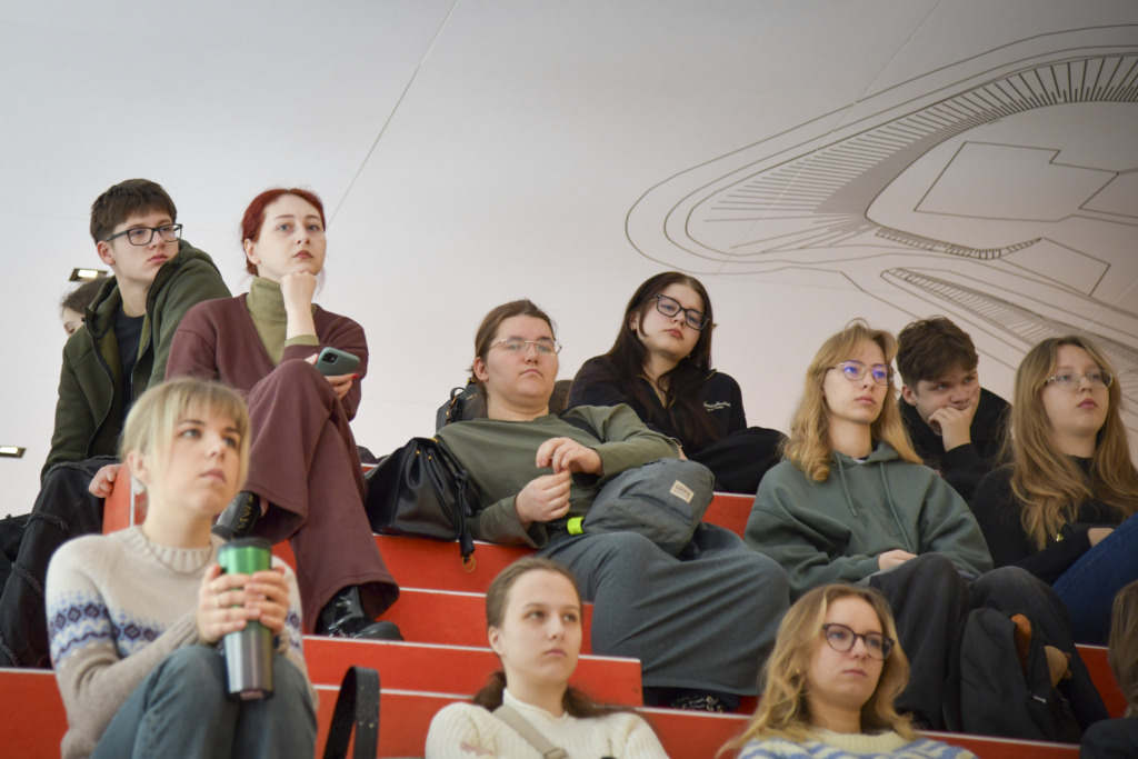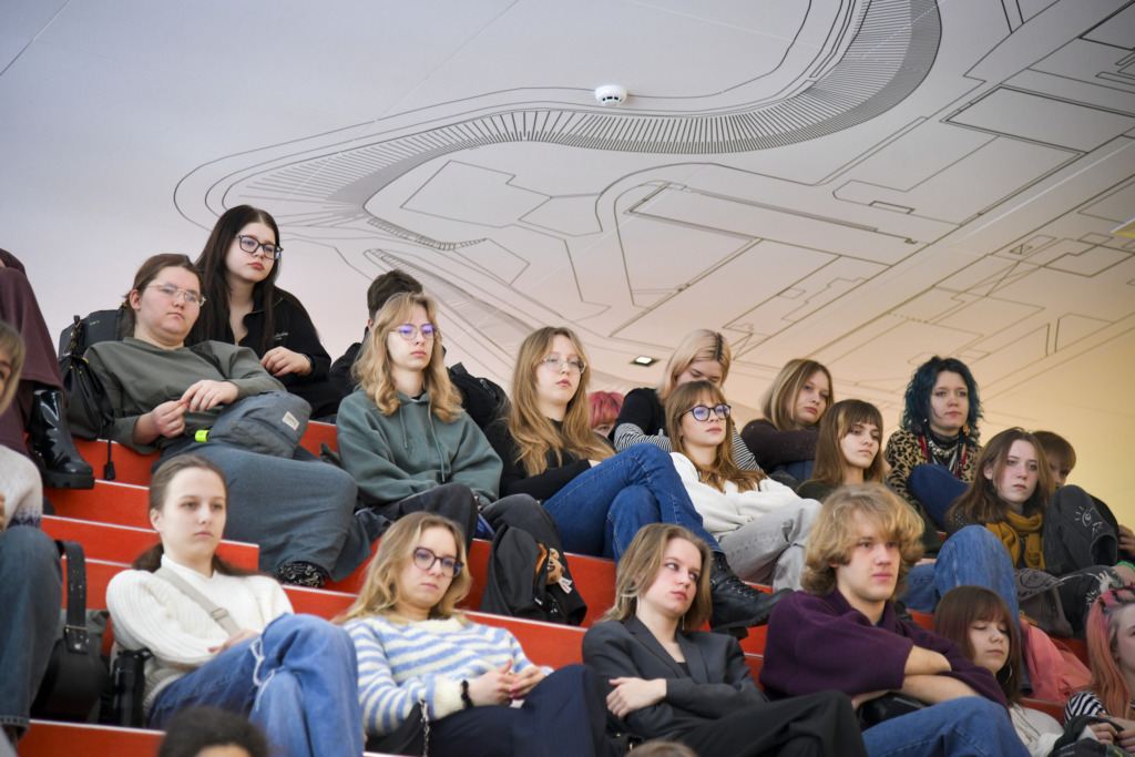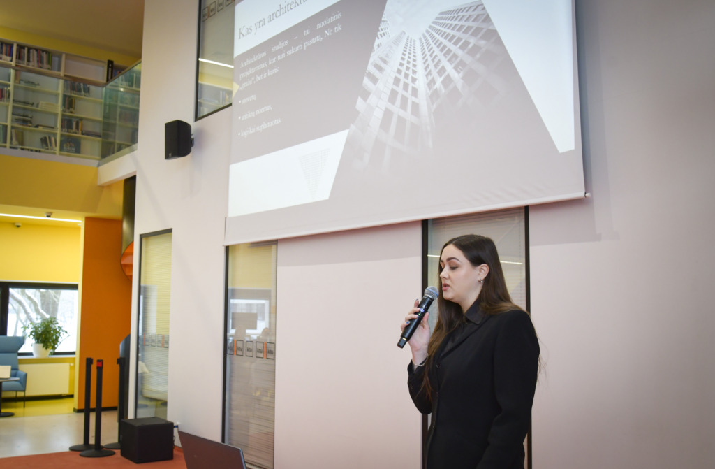 Susirinkusiems, kurių dauguma planuoja savo ateitį sieti su architektūros ar kitomis menų studijomis, apie studijas papasakojo fakulteto studentė Gabija Karpavičiūtė ir studijų programos vadovė Rūta Leitanaitė.