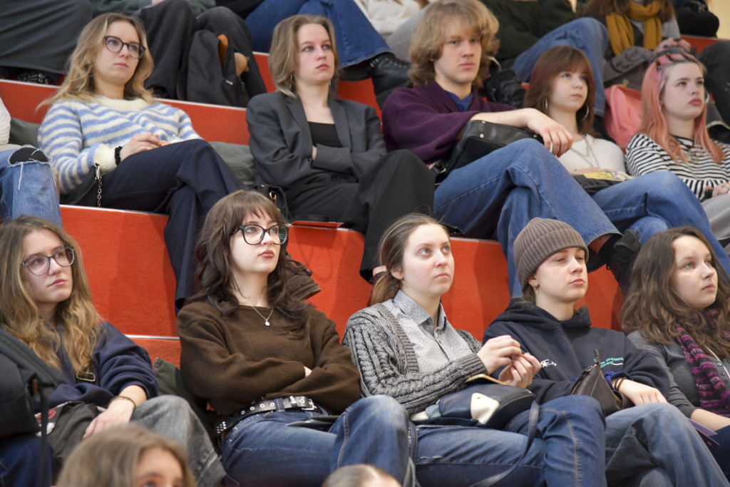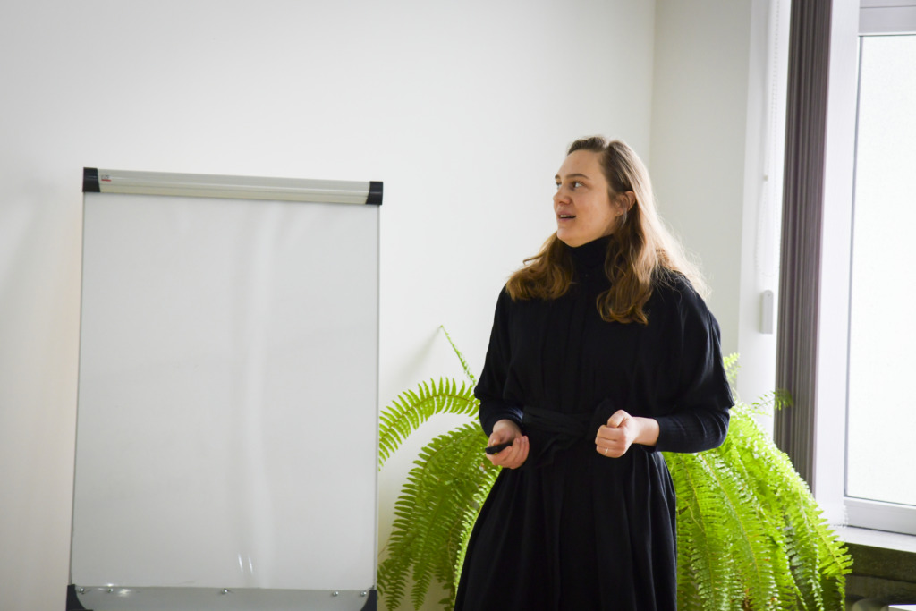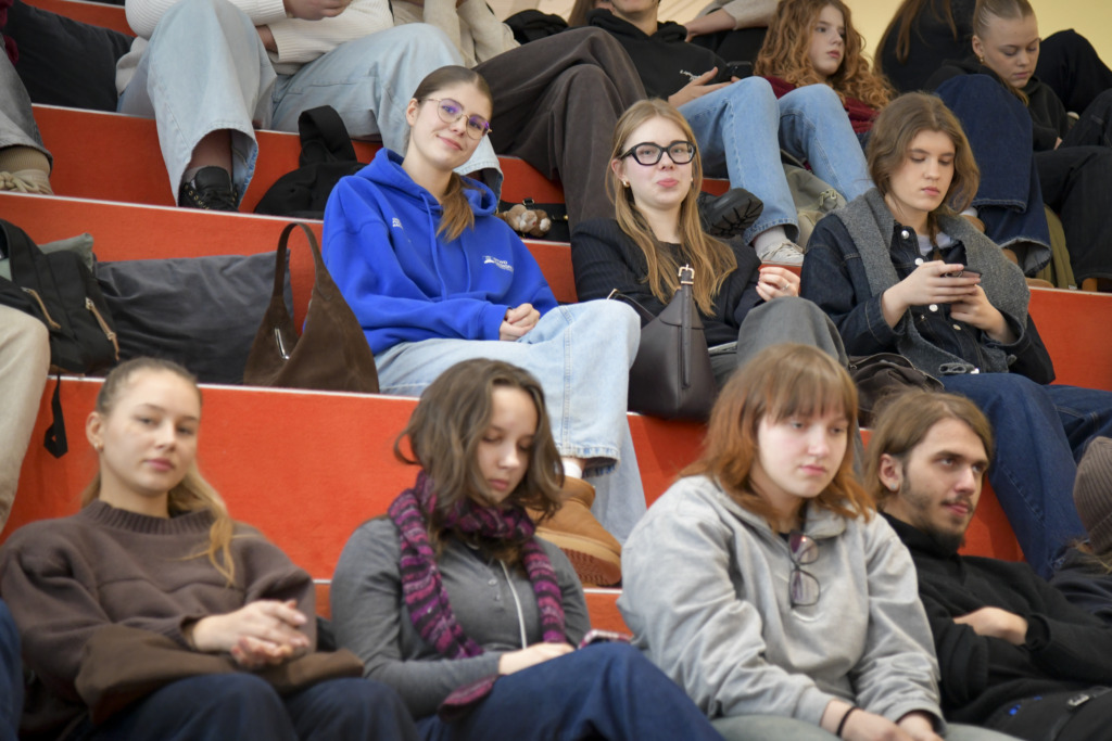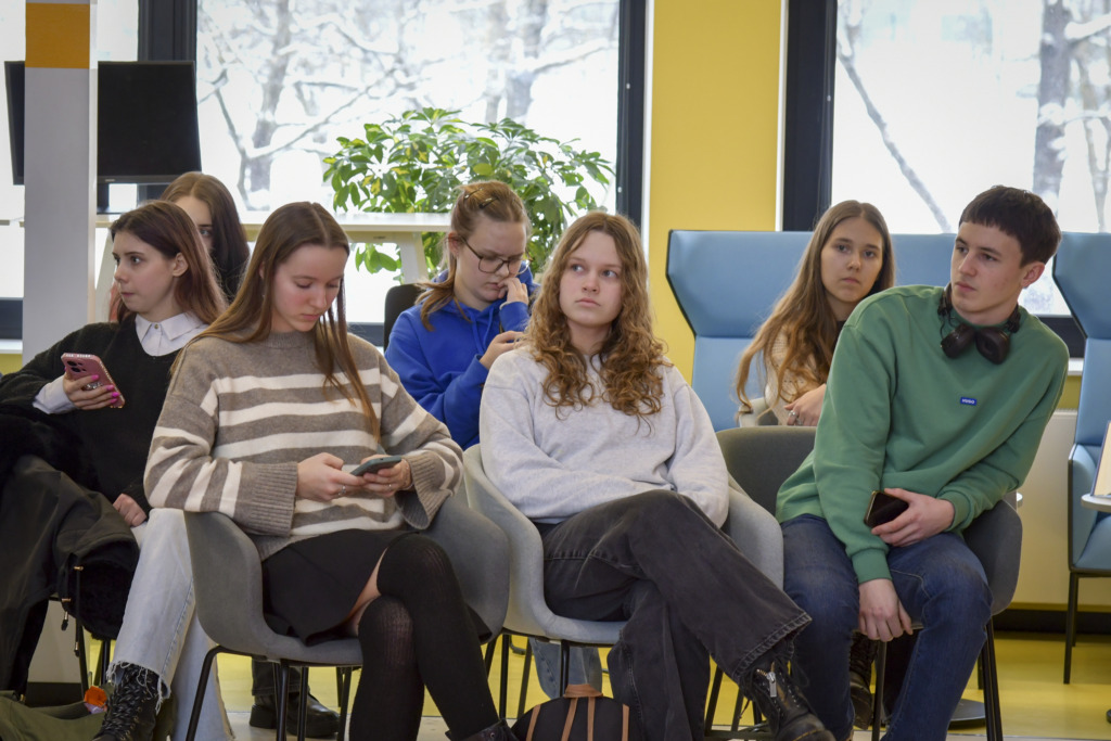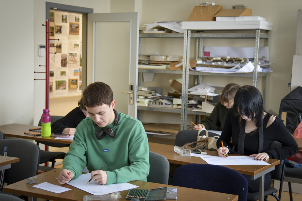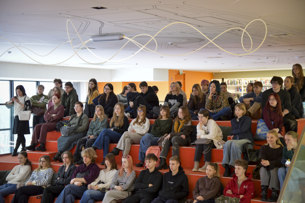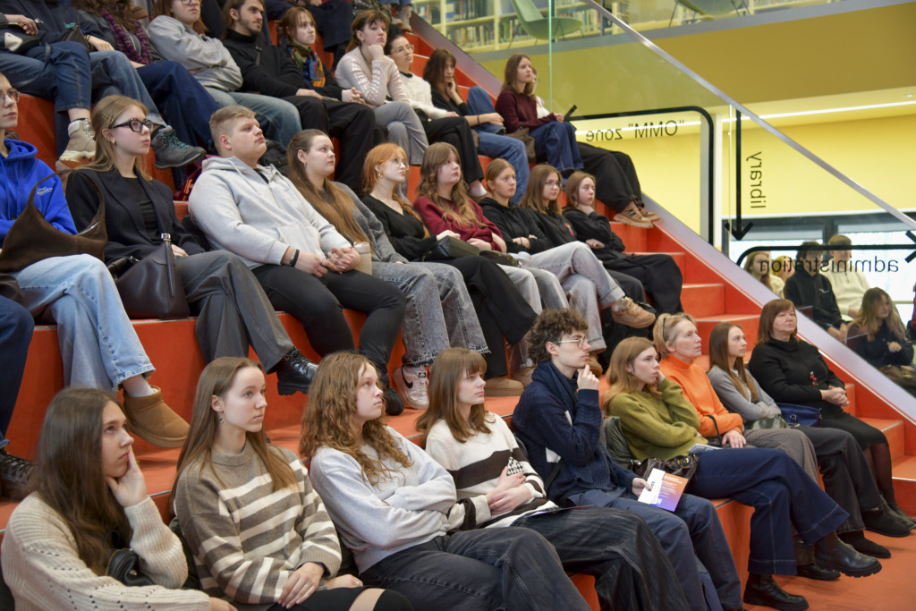 Susirinkusiems, kurių dauguma planuoja savo ateitį sieti su architektūros ar kitomis menų studijomis, apie studijas papasakojo fakulteto studentė Gabija Karpavičiūtė ir studijų programos vadovė Rūta Leitanaitė.