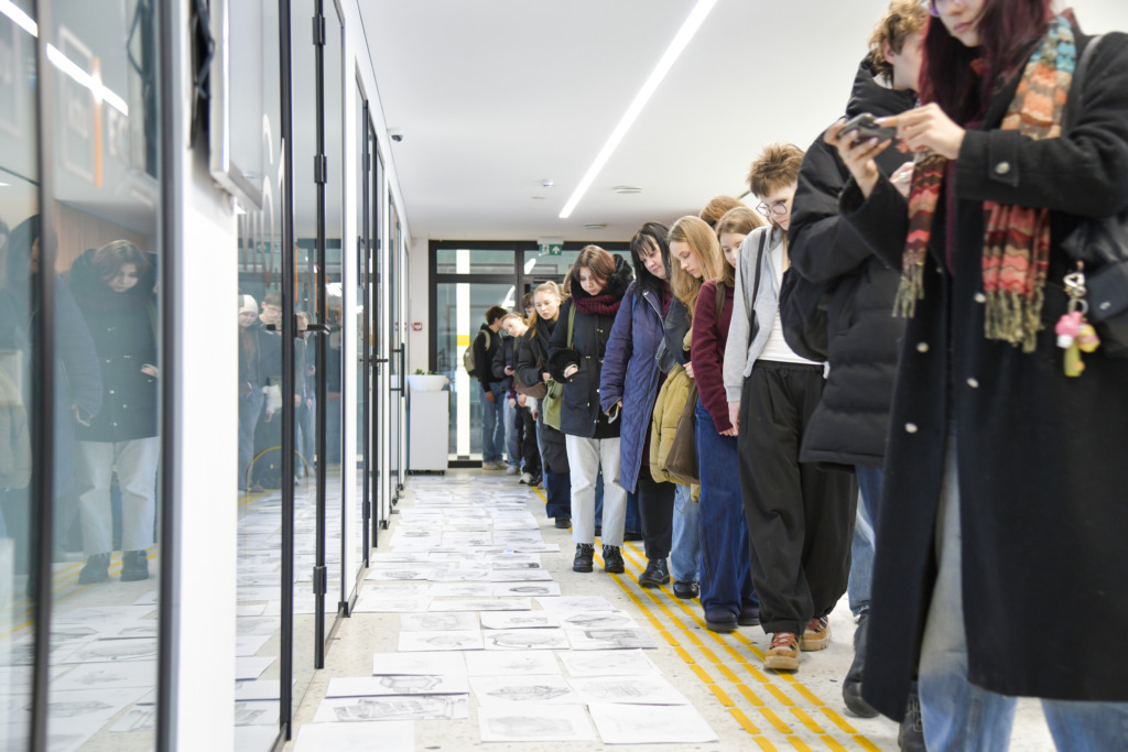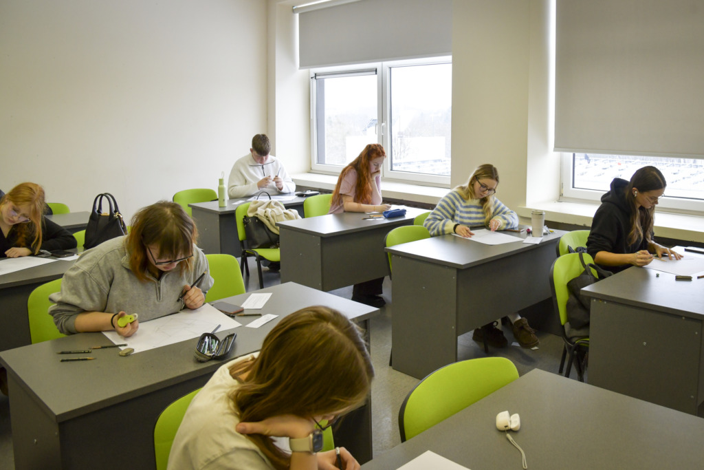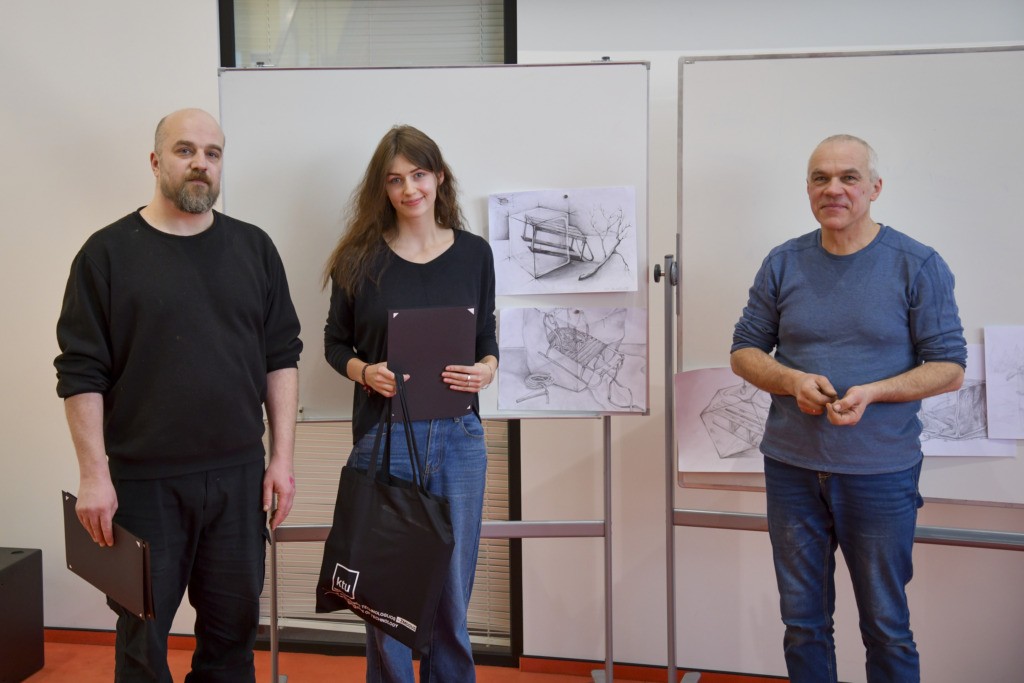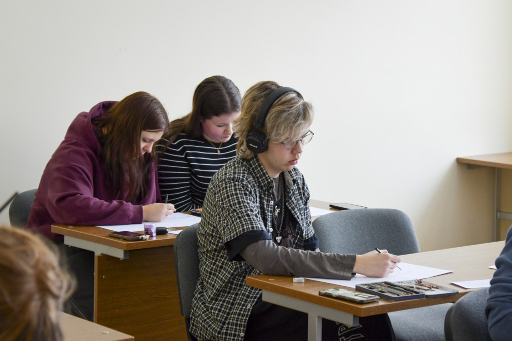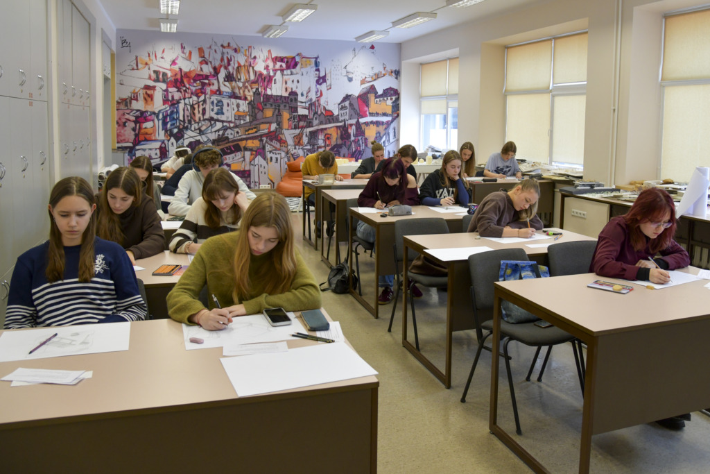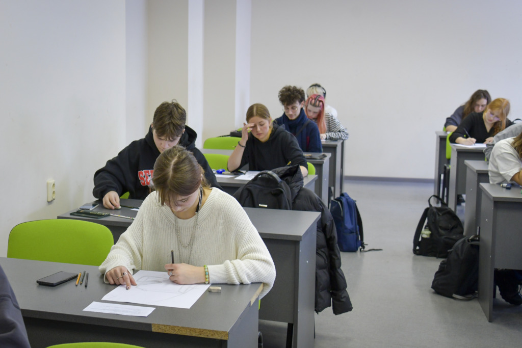 Fakulteto dėstytojui Tadui Žebrauskui pristačius užduotį ir olimpiados taisykles, dalyviai išsiskirstė į auditorijas, atlikti 3 valandų piešimo užduotį.