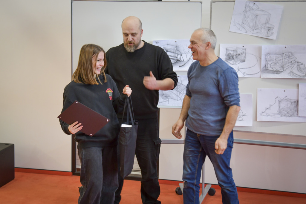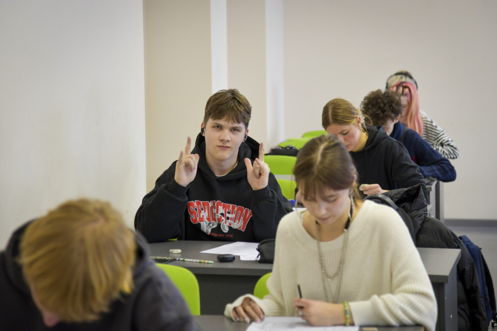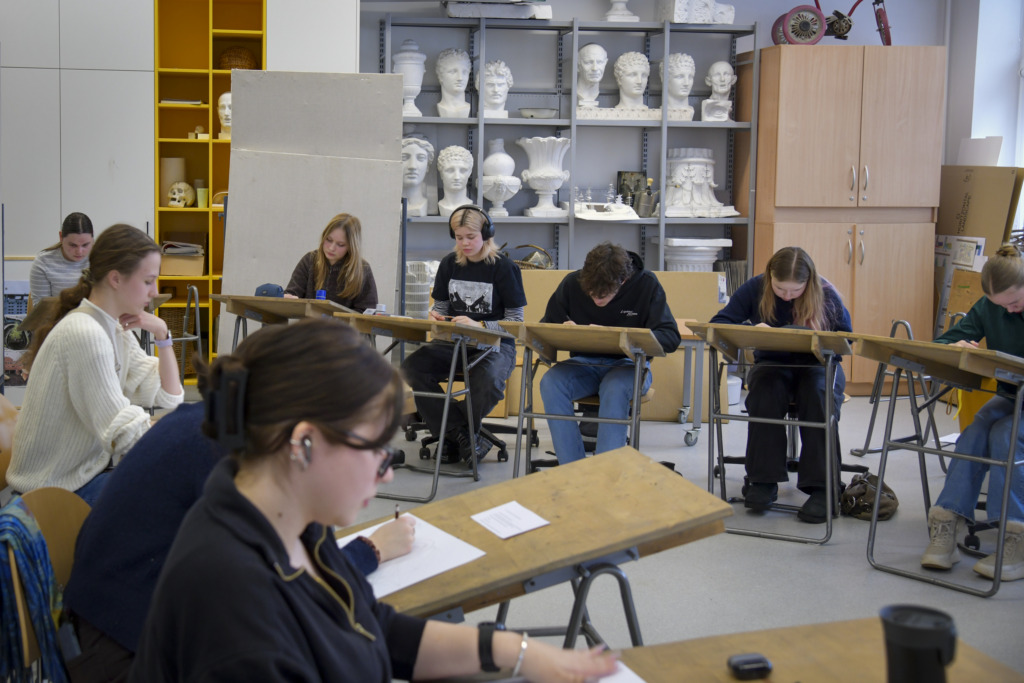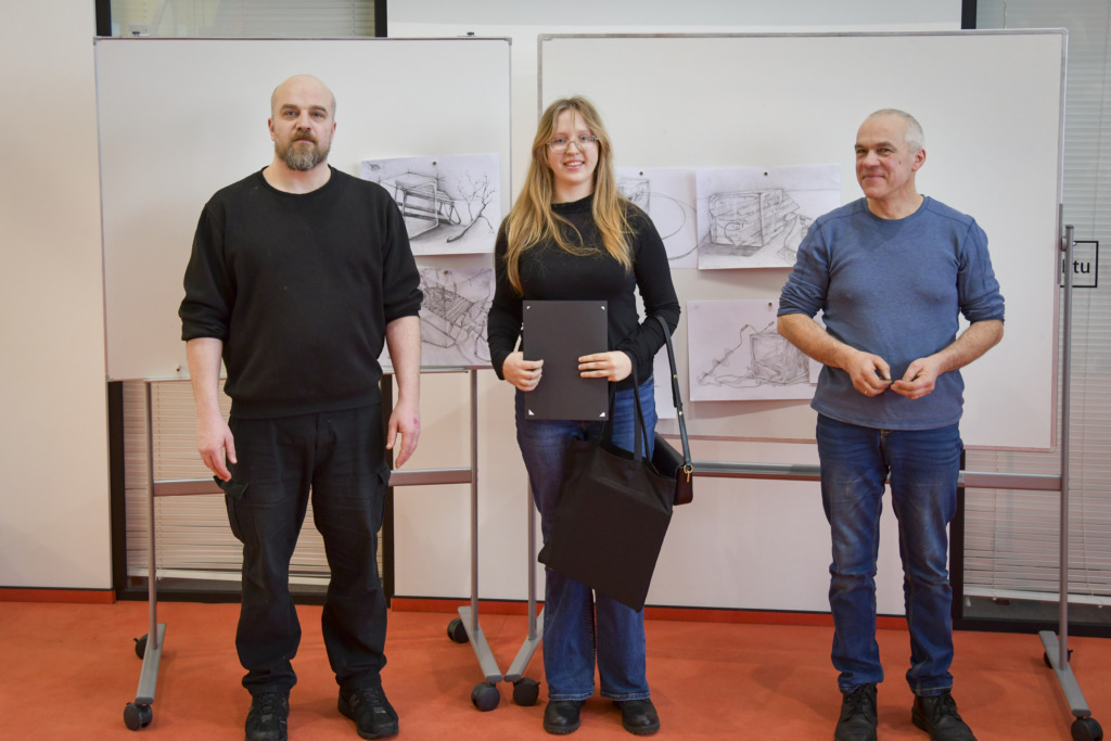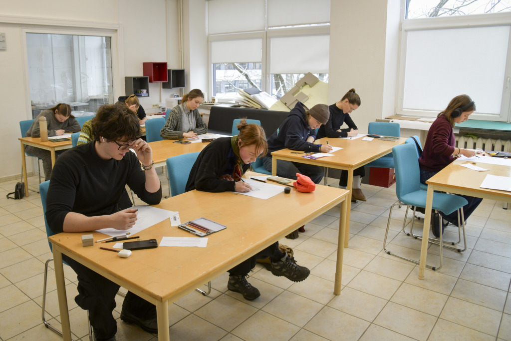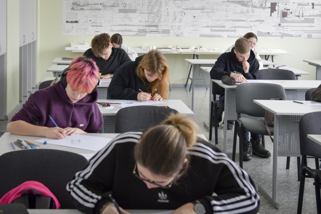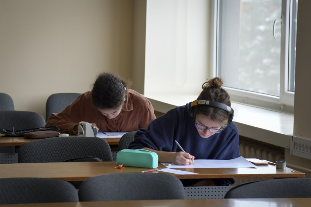 Fakulteto dėstytojui Tadui Žebrauskui pristačius užduotį ir olimpiados taisykles, dalyviai išsiskirstė į auditorijas, atlikti 3 valandų piešimo užduotį.